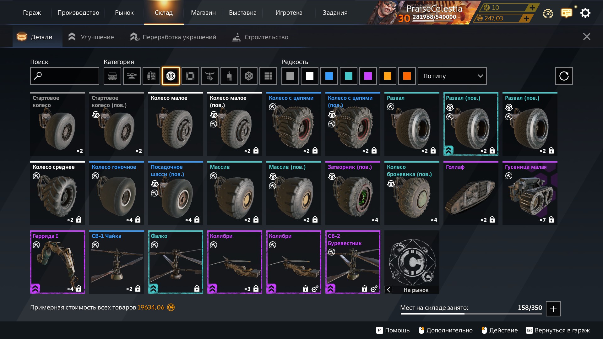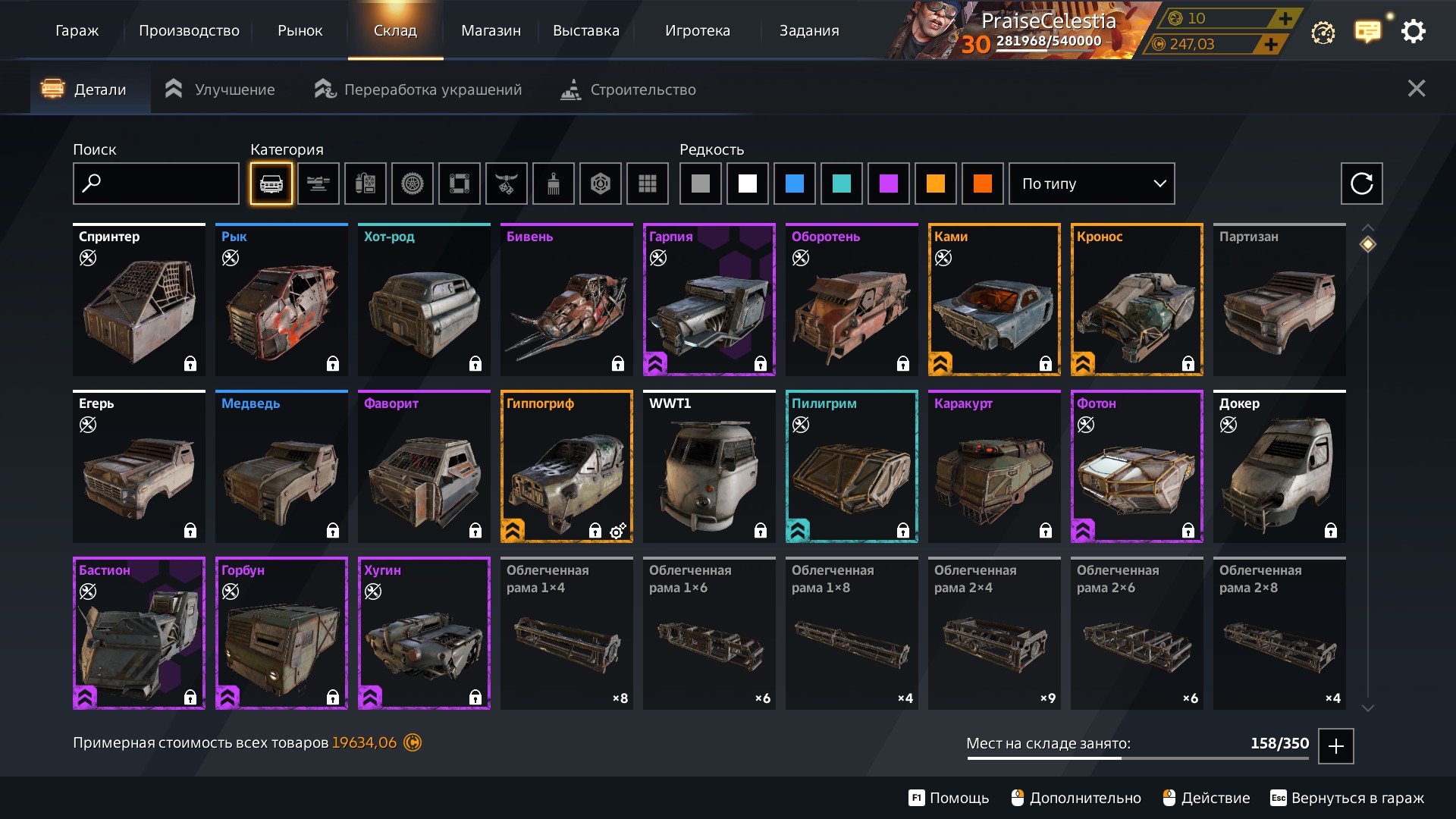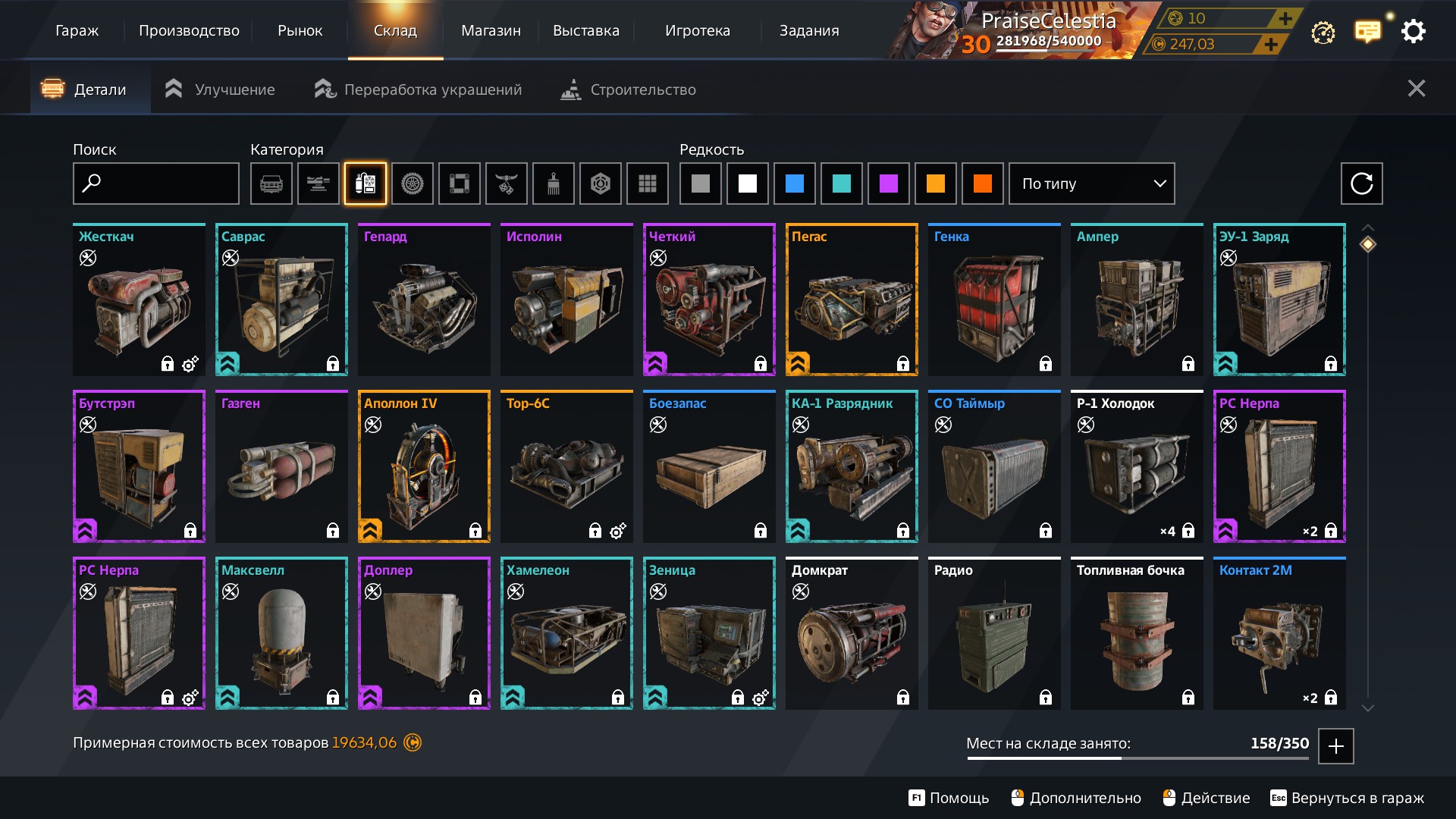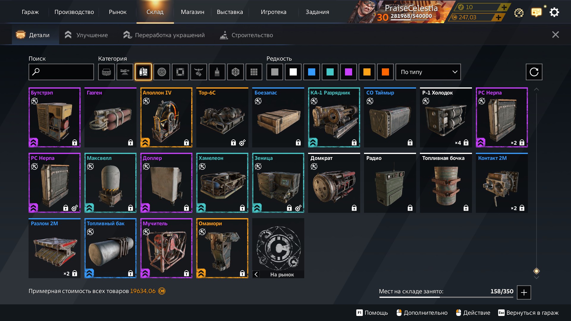 3 бочки, 1 скорп, второй готовился на крафт. Вот один из скринов, ну абсолютно нищий склад же, ни одной апнутой леги. Только козу оставил потому что она только одна и нужна на билд.